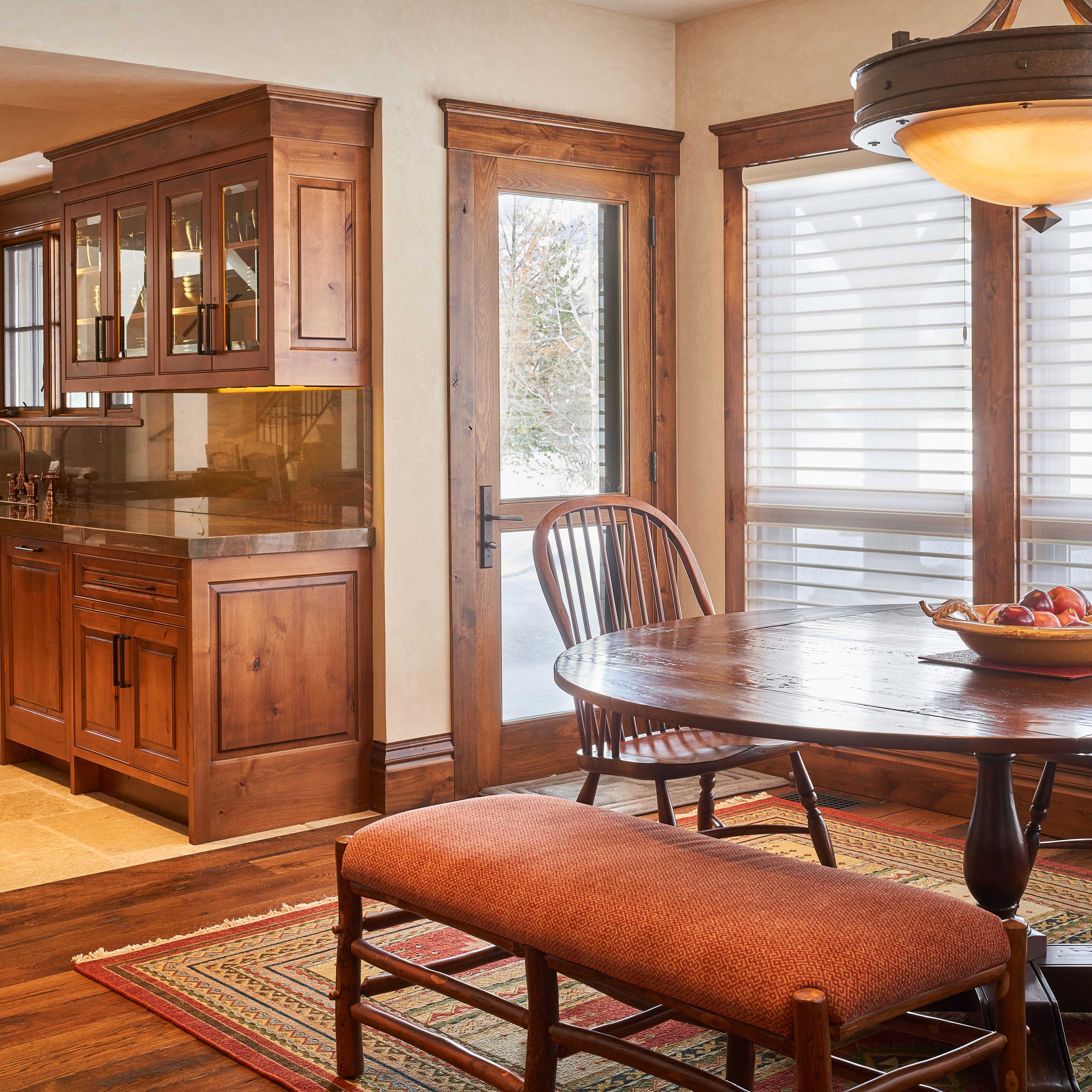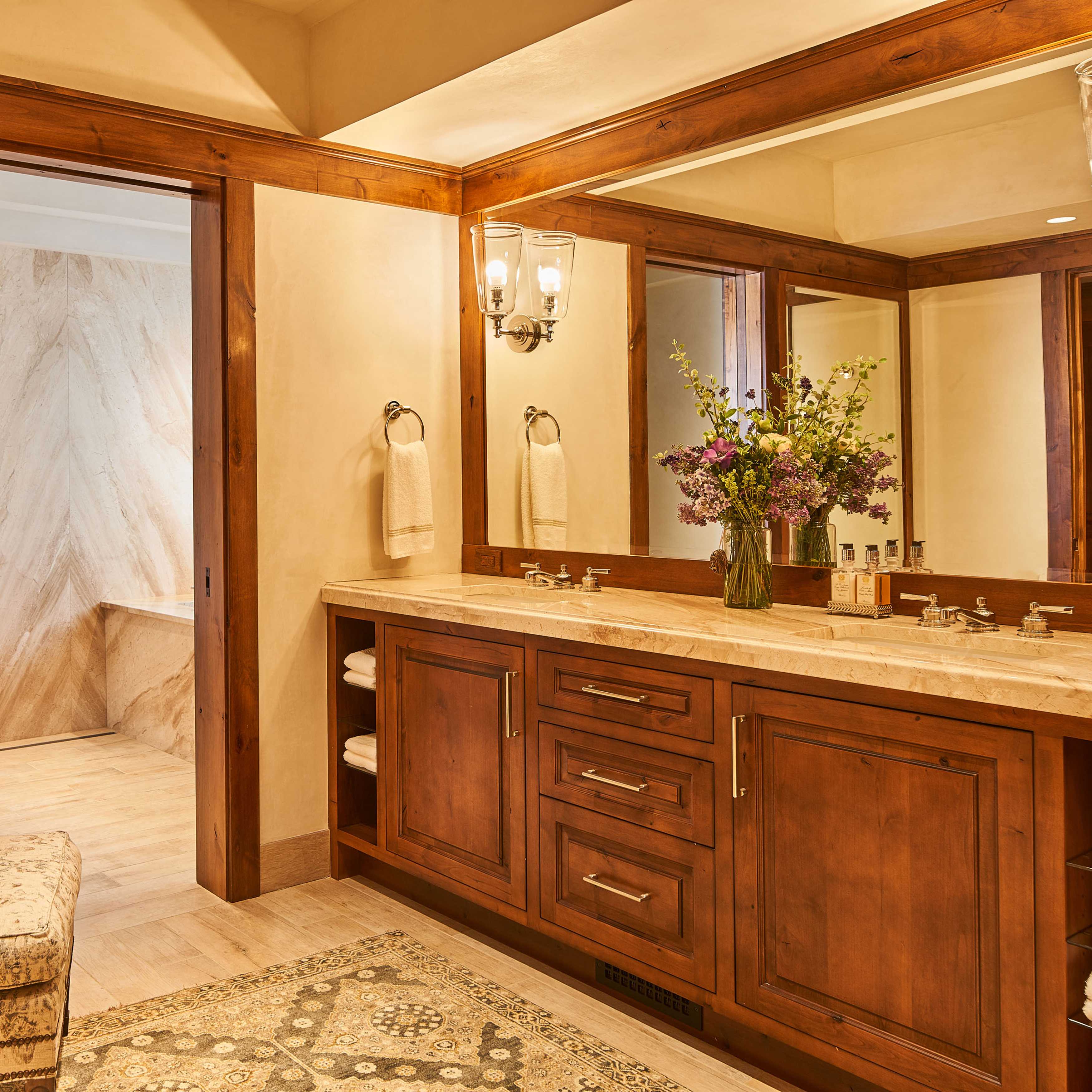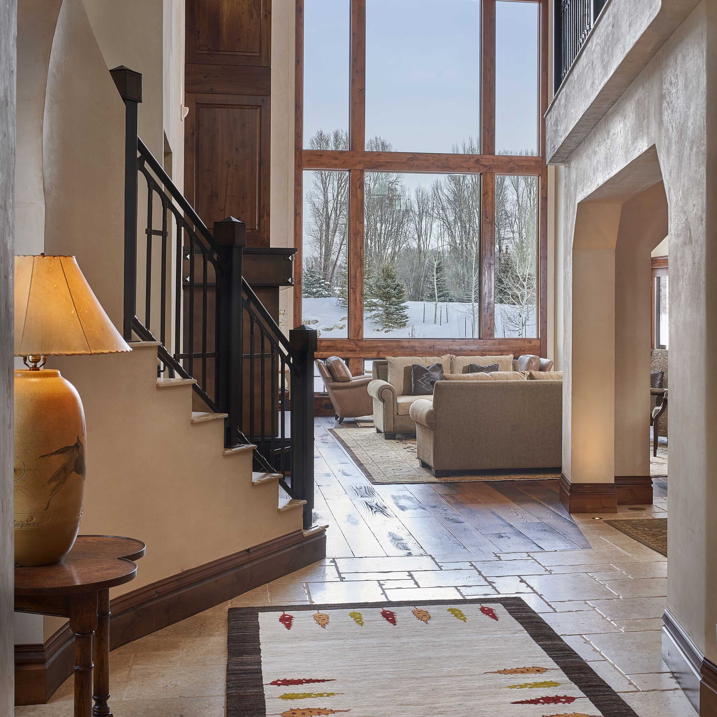 A European mountain aesthetic took us in the traditional direction with this 8,000 square foot complete remodel in the John Dodge subdivision in Wilson, Wyoming. Torn down to the studs, then reassembled with Reclaimed Oak wood flooring, cathedral ceilings, European plaster, and marble bathrooms. The traditional furnishings in neutral tones created a serene sanctuary for our client.